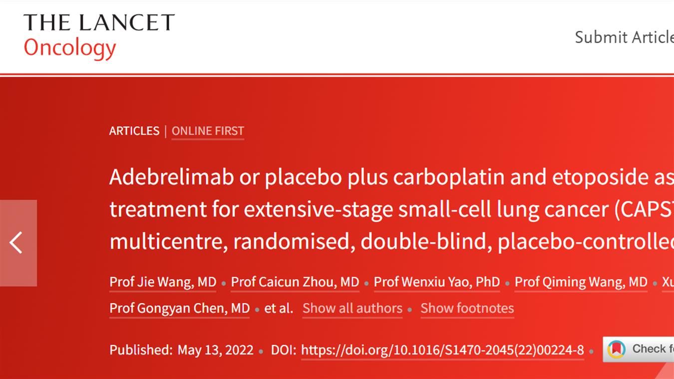 “双艾”组合联合诱导化疗用于广泛期小细胞肺癌的创新性研究成果登上《STTT》